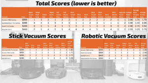 Here’s how those scores compare to the hard floor performance of some of the other vacuums that I recommend.