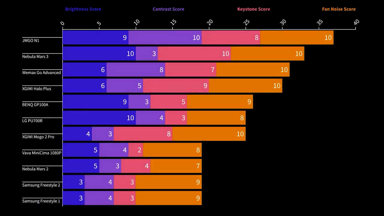 I did some off camera testing to figure out some of the lower ranks and came up with this overall ranking for portable viewing experience, with the two big standouts for me being the Nebula Mars 3 and JMGO N1.