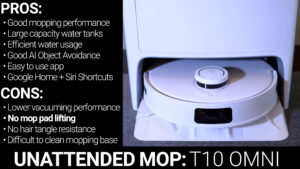 The Ecovacs T10 OMNI, X1 OMNI and Lafant T1 have no ability to raise their mops and will need an uninterrupted stretch of hard flooring to travel from one room to another. The T10 OMNI and X1 OMNI also need to have their mopping pads manually removed in order to switch to vacuum only mode, which definitely reduces their ability to clean autonomously.