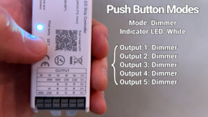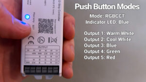 The PAUTIX WL5, EMITEVER 1501, BTF WB5, IDEAL LED, and GLEDOPTO 201P, 201W and 301W all have a push button that toggles between five different modes, and the documentation is terrible for them, so here’s what they do.