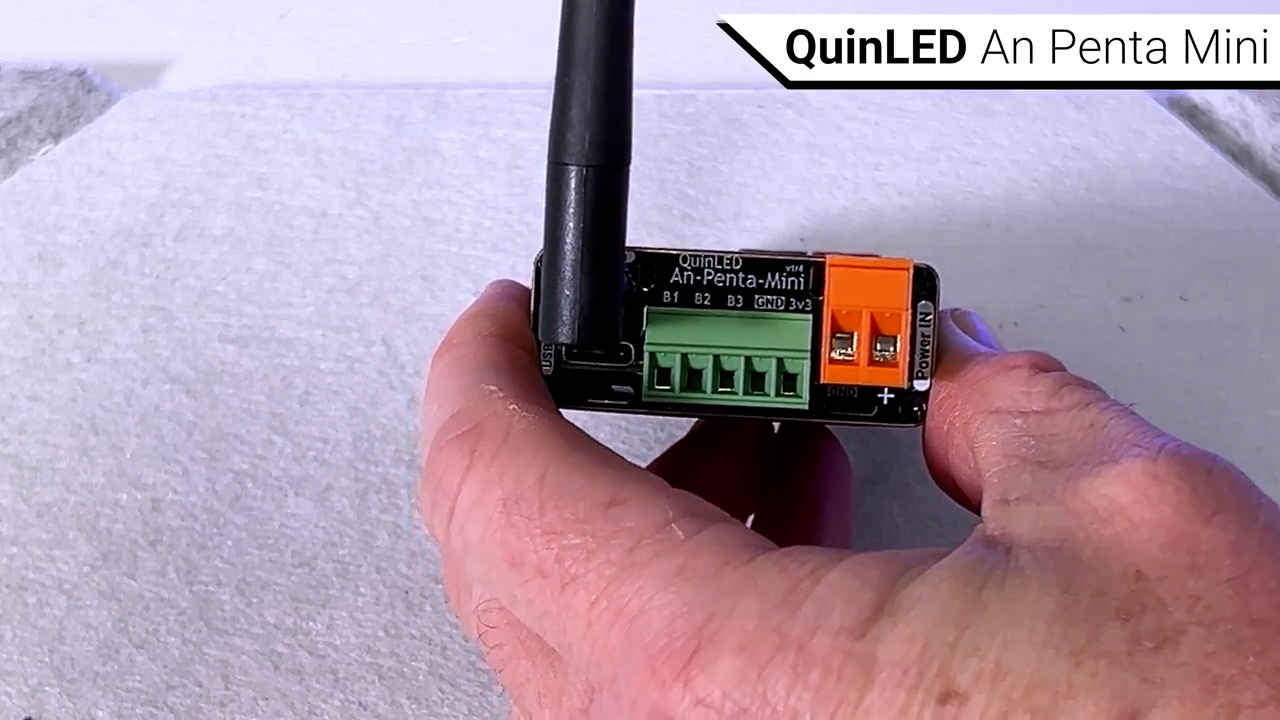 Jumping up quite a bit in price, the QuinLED An-Penta Mini is a WiFi controller that can run either WLED or ESPHome and supports 12V to 48V inputs with a maximum output of 5A per channel or 10A total, which I am oversimplifying slightly. The An-Penta Mini has big screw terminals that fairly easily fit 14 AWG ferrules or 12 AWG stranded wire on the input side and it has two outputs with the same wire capacity that are intended for the warm white and cool white channels. Then there are three smaller outputs for the RGB channels. The An-Penta Mini also has three button inputs on the opposite side which are configurable via WLED or ESPHome.