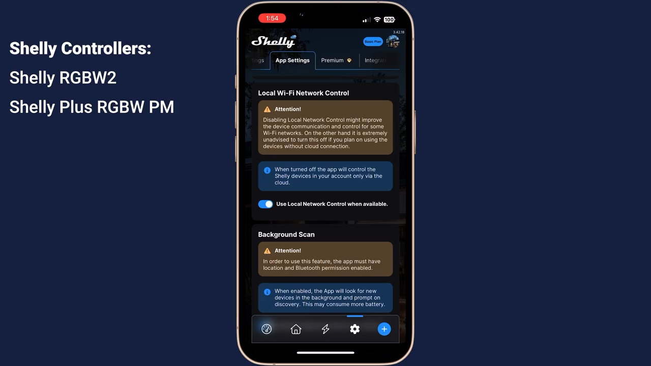 The next important aspect is being able to change the options on the controller to accommodate different LED strip types. Starting with the Shelly controllers, as I mentioned earlier, they only have four outputs, so they don’t support RGBCCT LED strips that have both cool and warm white and need five outputs. But you can set up the Shelly controller as an RGBW controller or four separate white channels, and a major benefit of the Shelly RGBW control is that you get a separate slider for the white channel so you can mix colors with the white channel as much or as little as you want. On the four channel white mode you get a separate brightness slider for each channel.