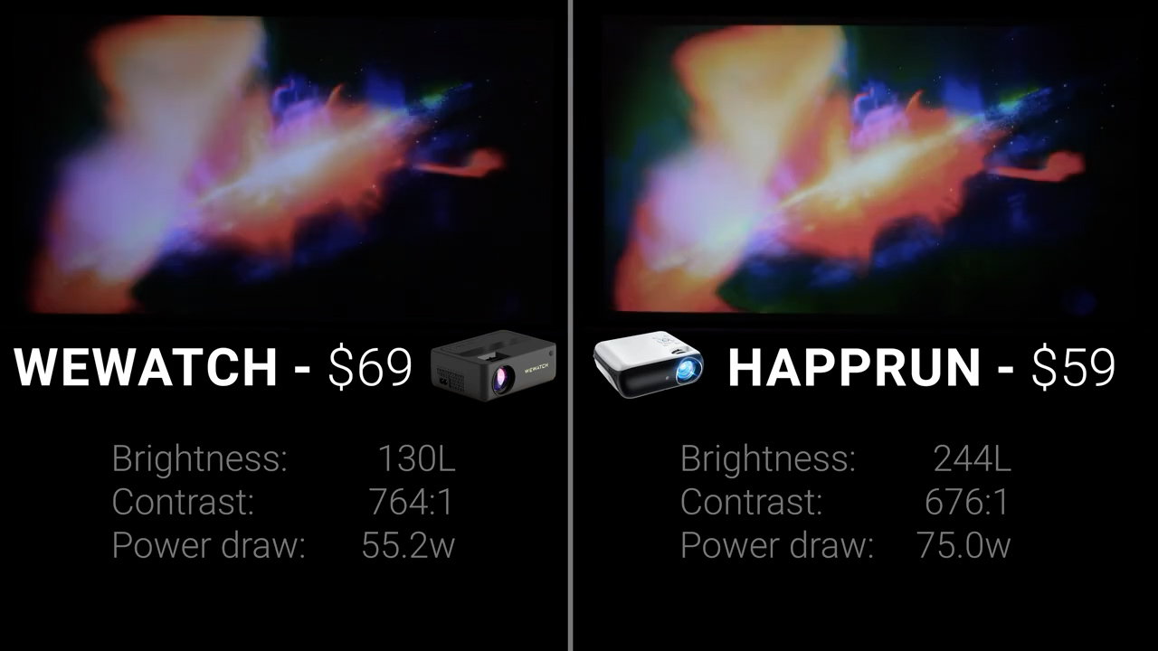 Round 8 then put the Happrun on the right up against the $69 WEWATCH on the left, and no tiebreaker was needed with the Happrun being over twice as bright with much better color saturation and accuracy.