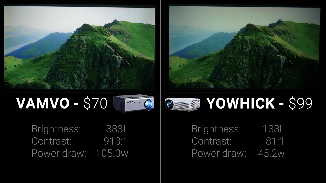 Round 14 had the VAMVO on the left vs the $99 YOWHICK on the right, and I wish I could get my money back for the YOWHICK, which had terrible brightness, terrible contrast, and wasn’t even close to competing with the VAMVO.