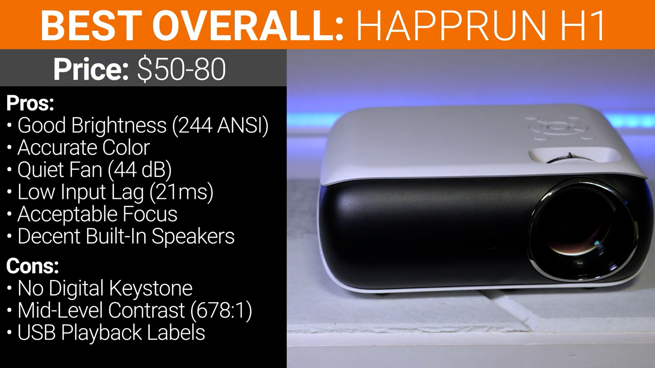 Overall, I don’t think my recommendation has changed from last year and the Happrun H1 is the best value for the price when you consider the total package of brightness, color, fan noise, input lag, focus and speaker quality. The price fluctuates between around $50-80 depending on sales, and at that price point there isn’t a better projector.
