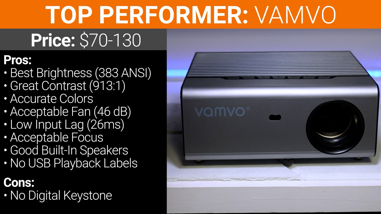 So, judging strictly on picture quality, the best projector under $100 was the VAMVO, but there’s more to consider.