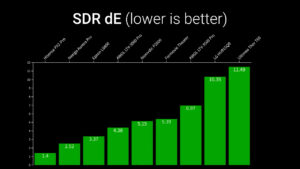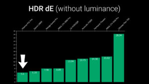 And while I do want to congratulate manufacturers for shipping SDR color accurate projectors, most projectors are still very inaccurate when it comes to HDR colors. I was frankly blown away to see that the Hisense PX2-Pro had an HDR dE of just 5.6 and very impressed that the AWOL, Nexigo and Epson ended up with HDR deltaE’s of less than 10. Even crazier than that, the Epson and Nexigo’s HDR dE including luminance errors were just 9.04 and 9.9, indicating that they have excellent tone mapping and should display HDR and Dolby Vision content extremely accurately.