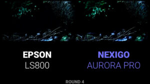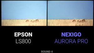 Because the Epson LS800 doesn’t support Dolby Vision it had to rely on its built in tone mapping to play back Wakanda Forever and Our Planet 2, and as a result low APL scenes looked grey and muddy on the Epson, even with dynamic contrast on, and in bright HDR scenes the larger color gamut of the Nexigo made the Epson’s colors look dull and undersaturated. It’s also hard to see on camera since the image is relatively zoomed out, but the image on the Nexigo looked much sharper and each individual hair in the lion’s mane was visible, compared to the Epson which looked more like a painting. To me there was no question that the Nexigo on the right would move on again to round 5, this time up against the AWOL LTV-3000 Pro on the left.