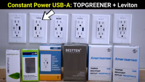 If you want an outlet that can provide constant power to its USB-A or USB-C port while plugging in other devices the Leviton and Top Greener are your only options, and between the two the Top Greener had slightly higher charging speeds and also supports 12V USB-C devices while the Leviton had slightly better efficiency and created less heat.