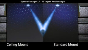 As you can imagine, you can’t just mount your projector above your ALR or CLR screen and expect it to work, since the entire purpose of these screens is to block light from above. So, to get them to work, you’ll need to flip your screen upside down, and to see the consequences of doing that I ran separate tests using 4 different lighting conditions with both ceiling mounted positioning and standard positioning, and then in Adobe Premiere I flipped and mirrored the ceiling mount video, so we can get an exact performance comparison between the two.