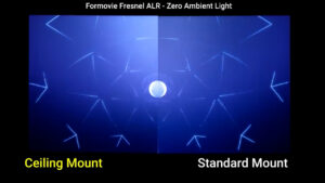 Starting with the most important question: What happens with your ambient light rejecting, or ceiling light rejecting screen when your projector is mounted above the screen rather than below it. For this test I’ll be using the two top performing screens from my UST Projector Screen showdown, the 100” fixed frame Lenticular CLR Spectra Vantage, and the 100” ALR Formovie Fresnel Screen.