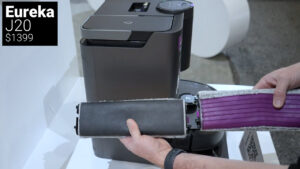 There was also a concept vacuum in the Eureka booth that installed under a washing machine and had automated mop water emptying and refilling using your washing machine’s existing plumbing, but I was disappointed to learn that this will be an all-in-one concept where you’ll need to buy Eureka’s vacuum and washing machine rather than buying a riser for your existing front-loading washing machine. No official release dates or pricing were available for either of the new Eureka vacuums.