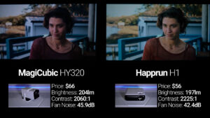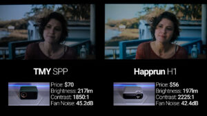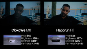 And that made round 8 the Groview B20 on the left and the Happrun H1 on the right, and honestly the B20 looked pretty good, but ultimately, not anywhere close to the Happrun H1 which was brighter with better color and better contrast in both bright scenes and dark scenes.