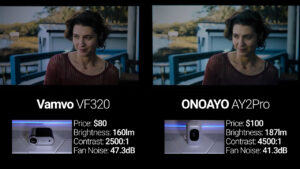 So round 21 was the Vamvo 320 on the left and the ONOAYO AY3 on the right, and again the Vamvo was just so much sharper in bright scenes, and the AY3’s black levels were a little bit muddy and gray, so the Vamvo moved on easily through this round.