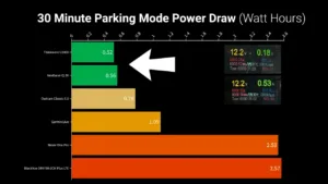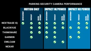 And the last thing I’m going to say about using these dash cams as security cameras is that depending on how often you drive, having a dash cam connected to constant power can significantly drain your car’s battery. I measured the power draw in parking mode for each camera for a 30 minute period and the Nextbase and Thinkware cameras used the least amount of power by far at just 0.52 and 0.56 watt hours, while the Nexar and BlackVue used five times as much power at 2.53 and 2.57 watt hours, which over a 24 hour period means that the BlackVue in parking mode would drain about 20% of an average car’s battery, which is why BlackVue recommends using an external battery pack when using parking mode, but you could leave the Nextbase or Thinkware in parking mode for roughly a week before causing any potential issues. That said, all these dash cams offer either time-based or voltage-based protections to make sure they don’t fully drain your battery, so the only real difference is how long they can run before automatically shutting down.