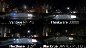 And for a reference during the video quality test, I’m going to put them up against the non-cloud dash cam that I personally use and recommend, the Vantrue N4 Pro. The Vantrue, BlackVue and Thinkware all have the same Sony Starvis 2 IMX678 image sensor which is renowned for its excellent night vision, but the Vantrue is the only camera that has high dynamic range enabled on the image processor, while the Nextbase’s 1440p camera uses a sensor from Omnivision.