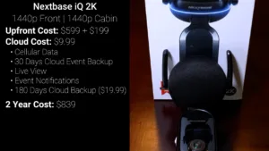 And last, the cloud dash cam with the highest upfront cost is the brand new Nextbase iQ which comes in three different resolution options, the cheapest version is $499 and has a 1080p front camera and a 1080p cabin camera, the 2K version is $599 with a 1440p front camera and 1440p cabin camera, and the 4K version is $699 with a 4K front facing camera and 1440p cabin camera, and I’ve got the 2K version for this video. There’s also an optional rear camera that was temporarily pulled from the market to fix some bugs, and that will be $199 when it’s eventually re-released.