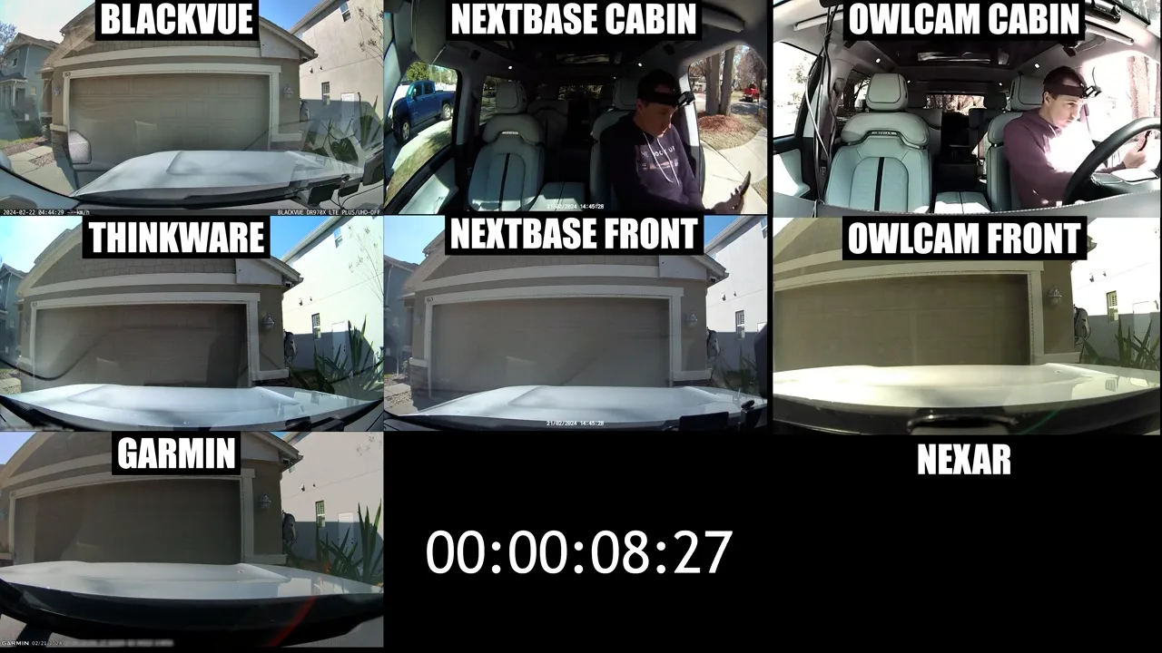 The Thinkware and BlackVue cameras also recorded the event but didn’t send a notification. The BlackVue caught the incident on its timelapse mode, which actually ended up being the most complete footage while the Thinkware recorded full resolution footage starting roughly 12 seconds after I came into frame. However, since both the Thinkware and BlackVue are front facing only the Nextbase had by far the most useful footage using both the front facing and interior cameras starting approximately five seconds after I approached the car, and in this test the Garmin, Nexar, and Owlcam failed to record the event at all.