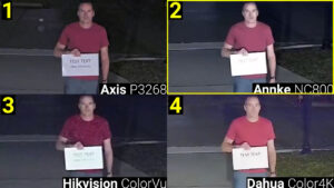 And at 10 ft the best image came from the Hikvision ColorVu, followed by the Annke NC800, and the Axis P3268 was in third.
