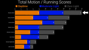 Adding up all the scores, the best overall image quality by a significant margin was the Annke NC800, which was also the winner of the 2021 video, and the other 1 / 1.2” image sensor camera, the Dahua Color4K came in second overall, and the Reolink CX810 was just one point behind that with lower stationary scores, especially at 10 feet, but better scores in motion testing.