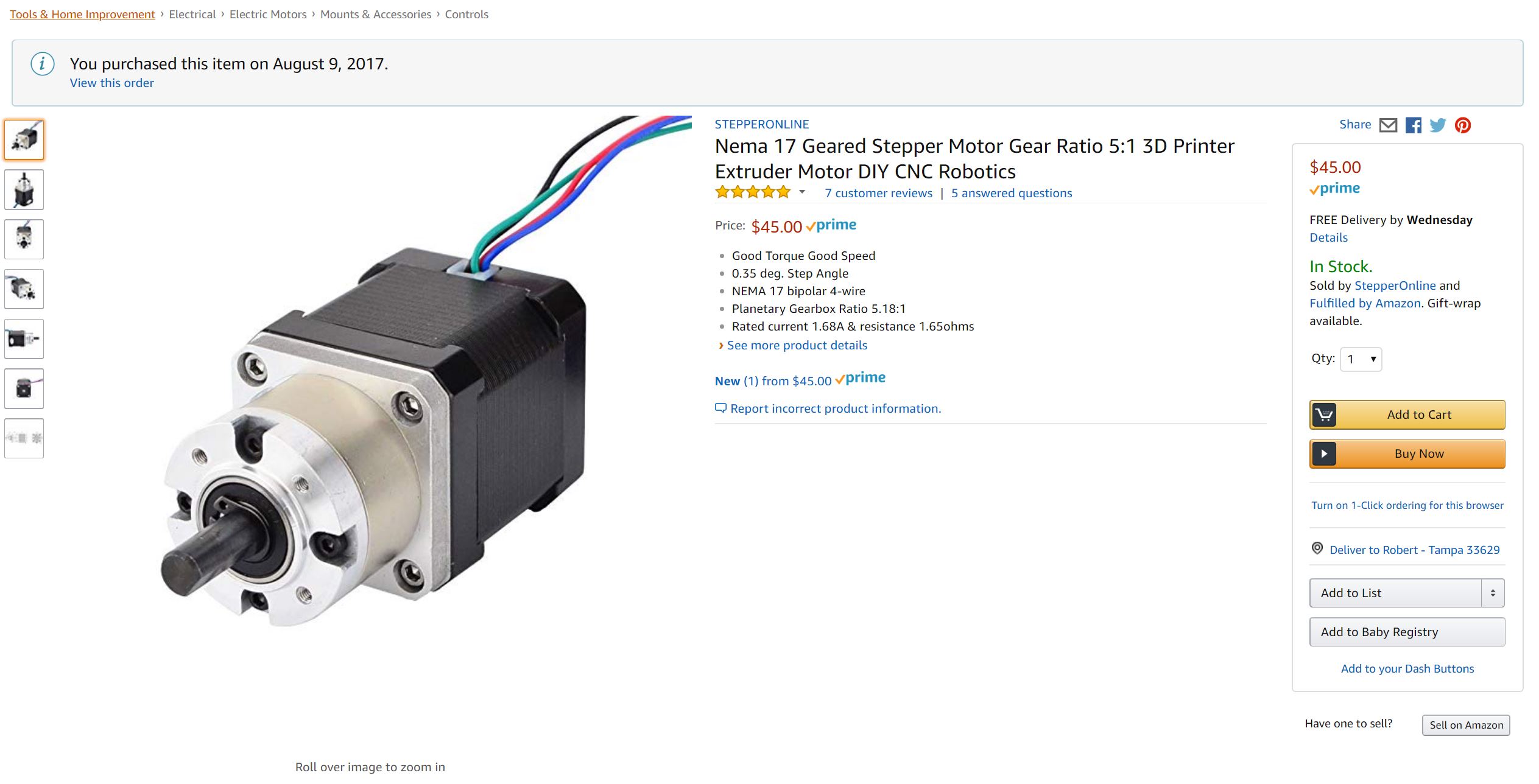 Geared Stepper Motor (stepper online): https://goo.gl/DW3Bgw