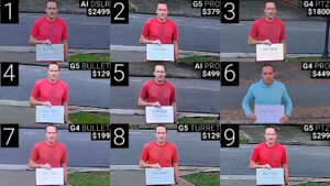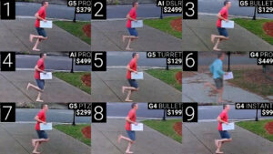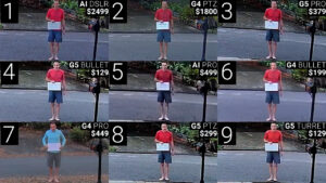And during the 25 feet running test, you can really see the difference in image processing on the G5 cameras versus the AI cameras and I put the AI Pro in fourth, the G5 Bullet in third, AI DSLR in second, and the G5 Pro in first, but you can see that the G5 lineup did a better job resolving the text, while the AI lineup did a better job preserving detail in my face.