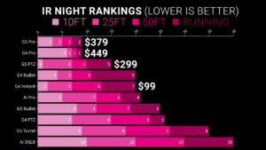 And that means for IR performance the G5 Pro and G4 Pro took the top two spots followed by the G5 PTZ, and very unexpectedly the G4 Instant had the 4th best IR night vision performance.