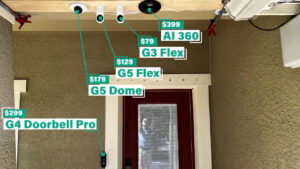 The next lineup of cameras are the outdoor covered cameras that only have IPX4 weather proofing, which are the G3 Flex, G5 Flex, G5 Dome, G4 Doorbell Pro, and the AI 360 camera.