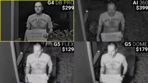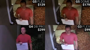 But at 7 feet for color night vision, the G4 Doorbell Pro did a little better and while the G5 Flex and G5 Dome were still in first and second, the G4 Doorbell Pro made its way into third, followed by the G3 Flex, and the AI 360 just didn’t have enough light to capture any facial detail.