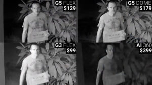 Thankfully the IR performance of these cameras was a bit better, and at 10 feet, all the cameras captured meaningful detail, but the unusual top performers were the G5 PTZ, G5 Bullet, G4 Instant, and G5 Pro.