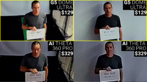 I ran these through the same tests as the outdoor covered cameras testing at both 7 feet and 15 feet, and there was nothing surprising about the outcome with the zoomed in 4K image of the AI Theta Tele Pro lens in first, the AI Theta Wide-Angle Pro in second, the G5 Dome Ultra in third, the AI Theta 360 Pro in fourth, and the G3 Instant in last place for picture quality.