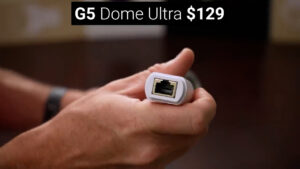 The G5 Dome Ultra is compact and has a vandal proof dome, but it’s got a huge ethernet pigtail that can’t be routed out the side so you’re going to need to drill a pretty large hole in your mounting location just to run your wires.