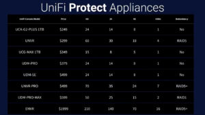 And to run UniFi Protect itself, there are more options than ever depending on the number of cameras you have and the amount of storage and redundancy that you need, with the least expensive option being the CloudKey Gen 2+ for $249 with a 1 TB SSD preinstalled which has a capacity of up to fourteen 5-megapixel cameras or eight 4K cameras.