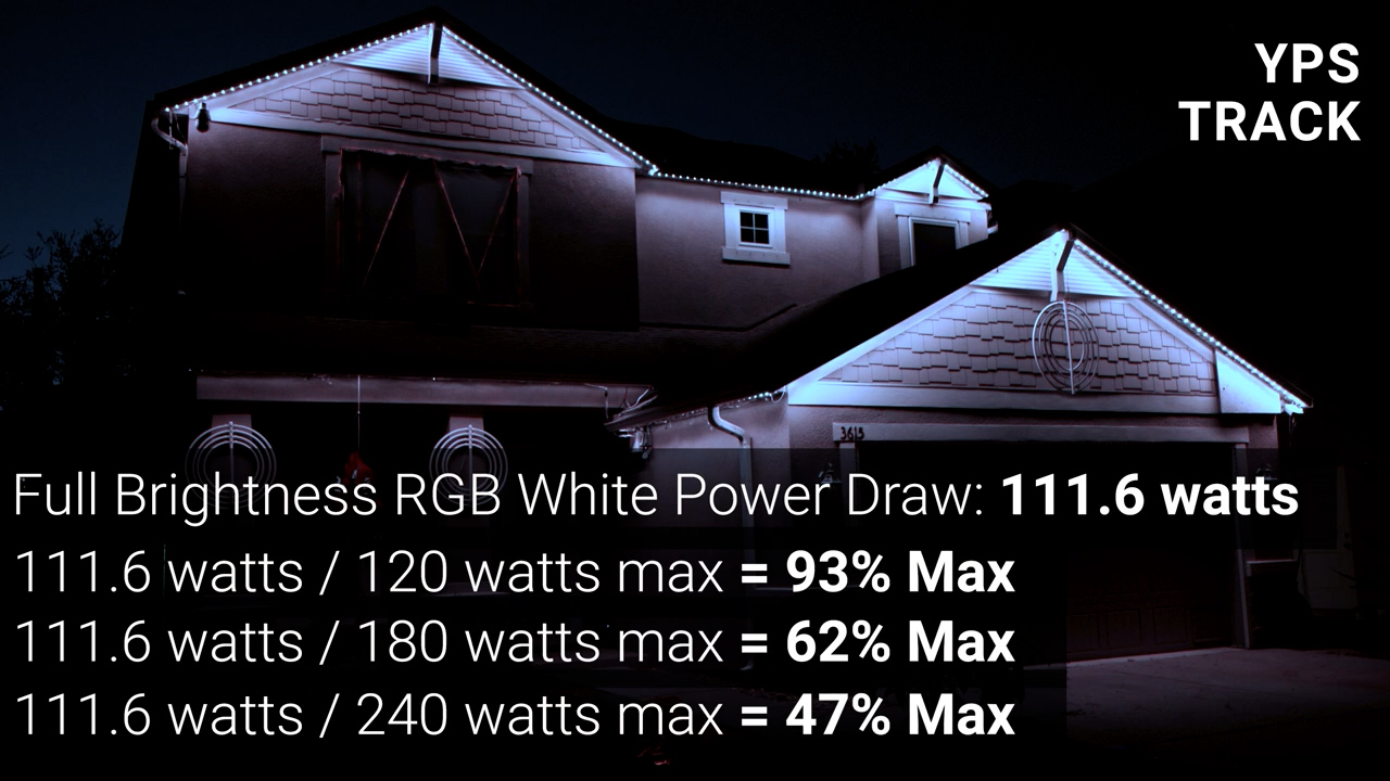 The other big difference is that the YPS Puck track doesn’t come with a power supply or controller, so you’ll need to choose those for yourself, but the pucks are 12 V and at full brightness white I measured 111 watts for all 30 meters of ten puck density, so you’ll need at least a 12 V, 10 A power supply, but a 15 A or 20 A supply would be better if you plan on using white extensively.