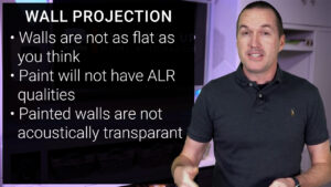 Another option is to forgo a screen completely and project onto a painted wall, but that does present its own unique set of issues. First, just like using a non-tensioned dropdown screen, most walls are not as uniform as you think they are, and an ultra-short throw projector is a great way to find out just how wavey your wall actually is. For this reason, I really wouldn’t recommend projecting directly onto your wall using an ultra-short throw, but a standard or short throw projector will usually be fine.