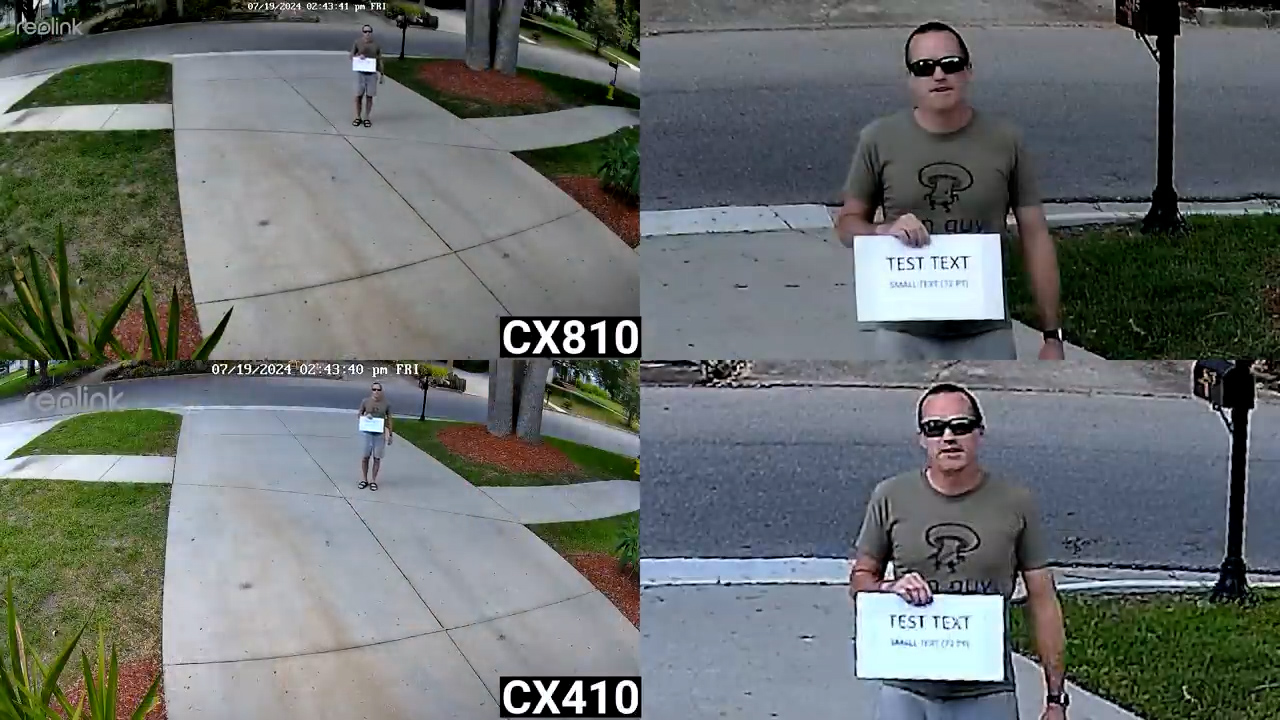 After that are the new CX line up, which are general purpose cameras with much larger image sensors making them suitable to use with color night vision in low light situations. The $72 CX410 is 4 megapixels and the $99 CX810 is 8 megapixels. Comparing the two the CX810 is better in almost all conditions due to its increased resolution, and compared to the much cheaper RLC-820A the CX810 has a wider field of view, slightly higher clarity, and less motion smearing at night but is also $30 more per camera. Overall, I haven’t been impressed with the CX410’s overall clarity and I’m going to put it in C Tier, but I think the CX810 is a significant upgrade and belongs in A Tier.