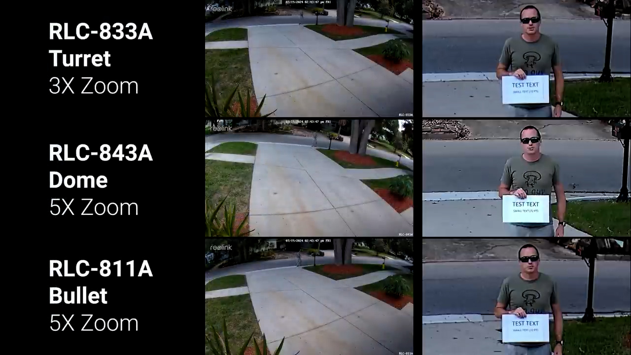 The 833A only has 3x optical zoom compared to 5x in the 811A and 843A but all three use identical 1/ 2.8” sensors so the image quality was almost exactly the same during the day, with the exception of the 843A being slightly over sharpened, but the 843A was consistently better than the other two and did a great job resisting smearing in the 25 ft running test, making it a really versatile camera for close up identification in the most secure areas of your property. A Tier for the 843A, which is also the most expensive of the three, and B Tier for the 811A with its slightly worse image quality, but 5x zoom and also B Tier 833A with less zoom, but more affordable pricing.