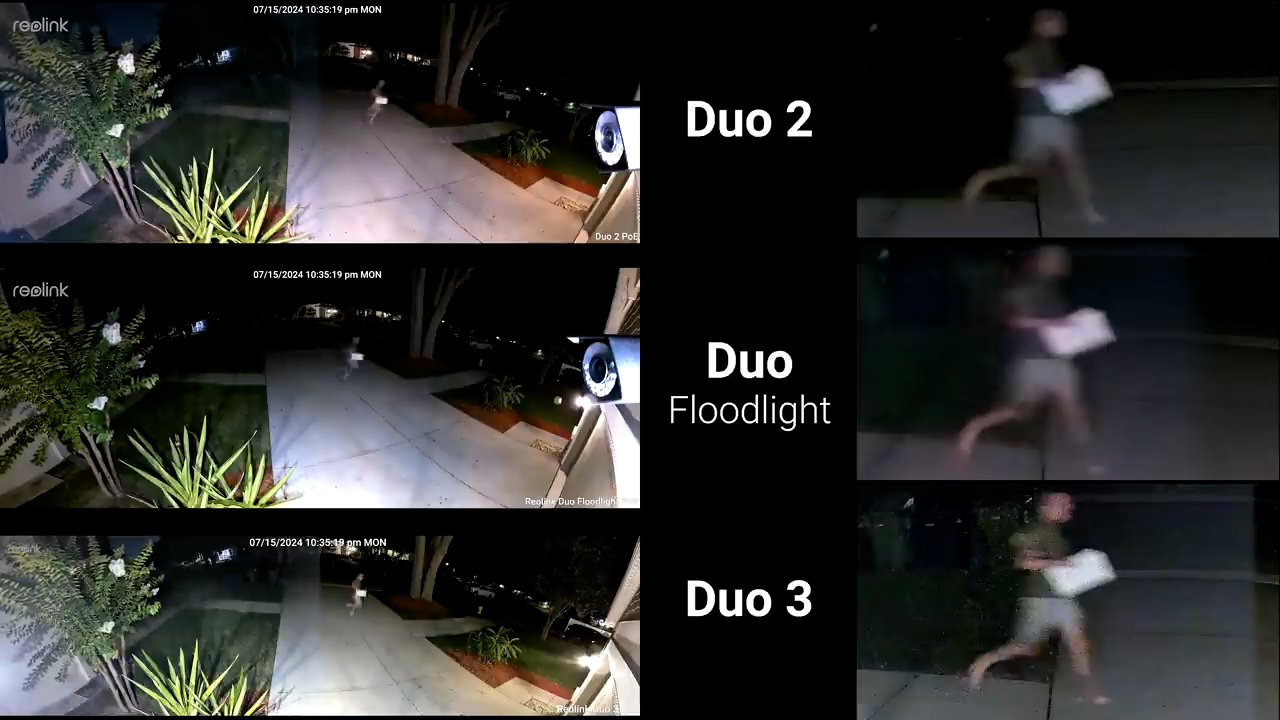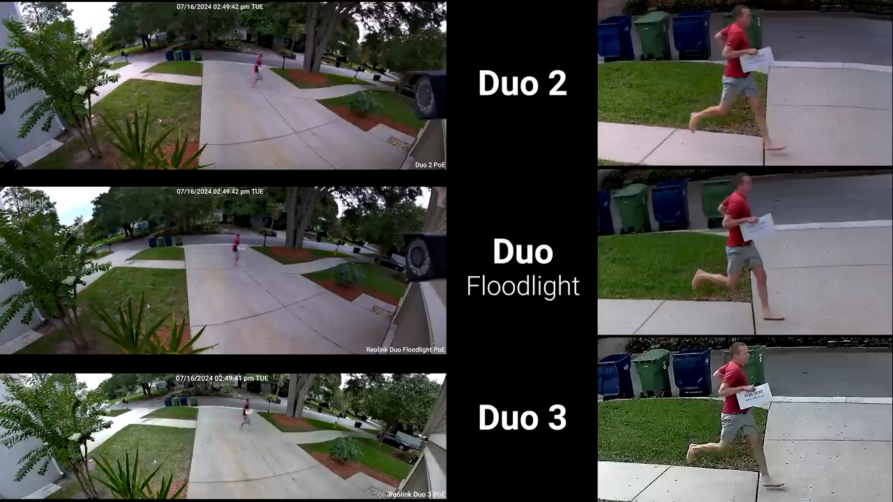 The Duo 3 has a total of 16 megapixels of resolution versus 8 on the Duo 2 and Floodlight, but in my testing, there wasn’t a significant difference in clarity during the day for stationary testing at 10, 25, or 50 feet, and during the running test the Duo 3 was over sharpened and didn’t provide any extra detail over the lower resolution cameras.