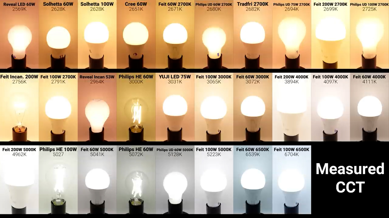 Separate from color temperature, a major difference between cheap bulbs and high quality bulbs are their ability to accurately show the natural colors of an object, which is called their color rendering index or CRI, and for the most part all of the bulbs in this video did a great job compared to the cheap no-name bulbs from my last video, but some notably great performers were the YUJILED bulb with 97.6 CRI and the Philips Ultra Definition series which all ended up at the top of the list with the 75 watt version doing the best with 97.1 CRI, then the 100 watt, and then the 60 watt daylight and soft white versions.