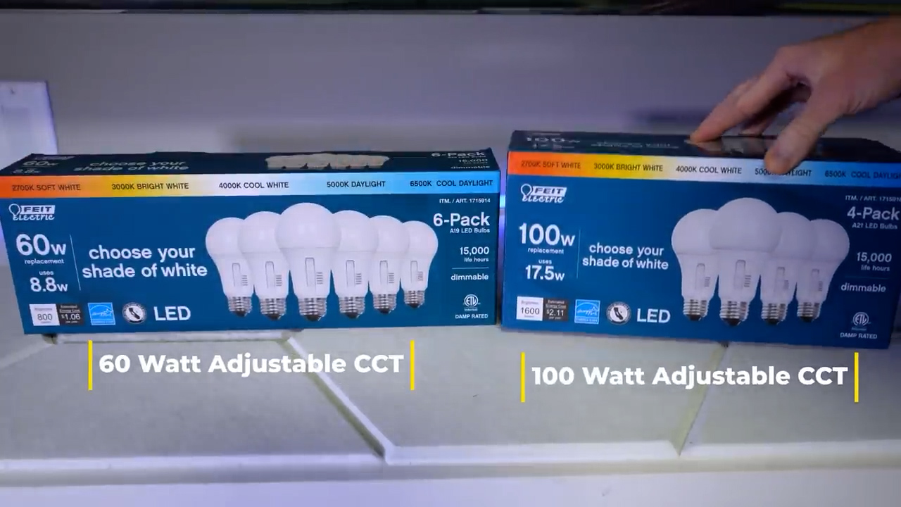 Also at Walmart, I got a 200W Feit Electric adjustable color temperature bulb that can change between 2700K, 4000K, and 5000K using a switch on the base of the bulb.