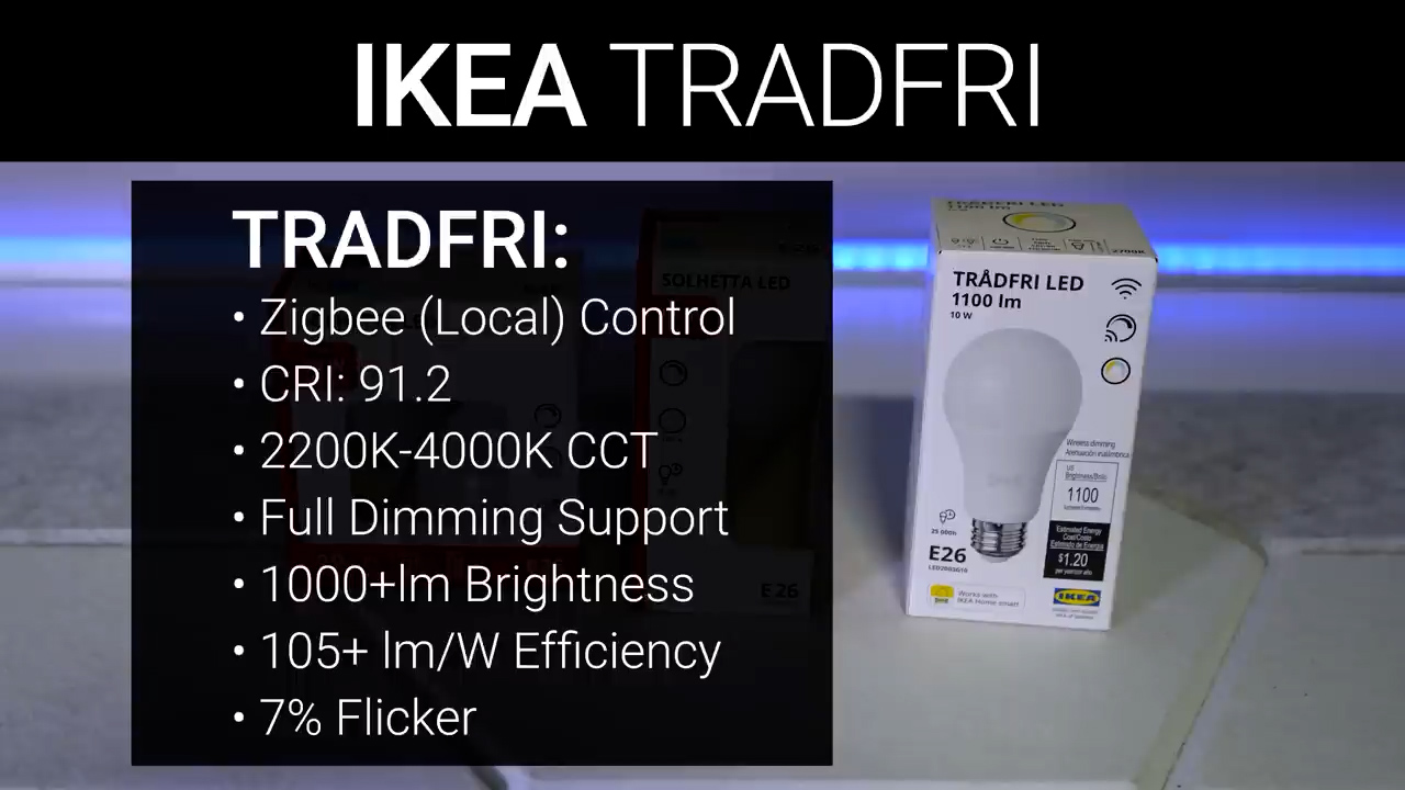 At Ikea I got the Solhetta 60W and 100W soft white bulbs, and as a bonus I also picked up a Tradfri 75W Zigbee CCT bulb by popular demand, even though as a smart bulb it doesn’t really fit in with this video.