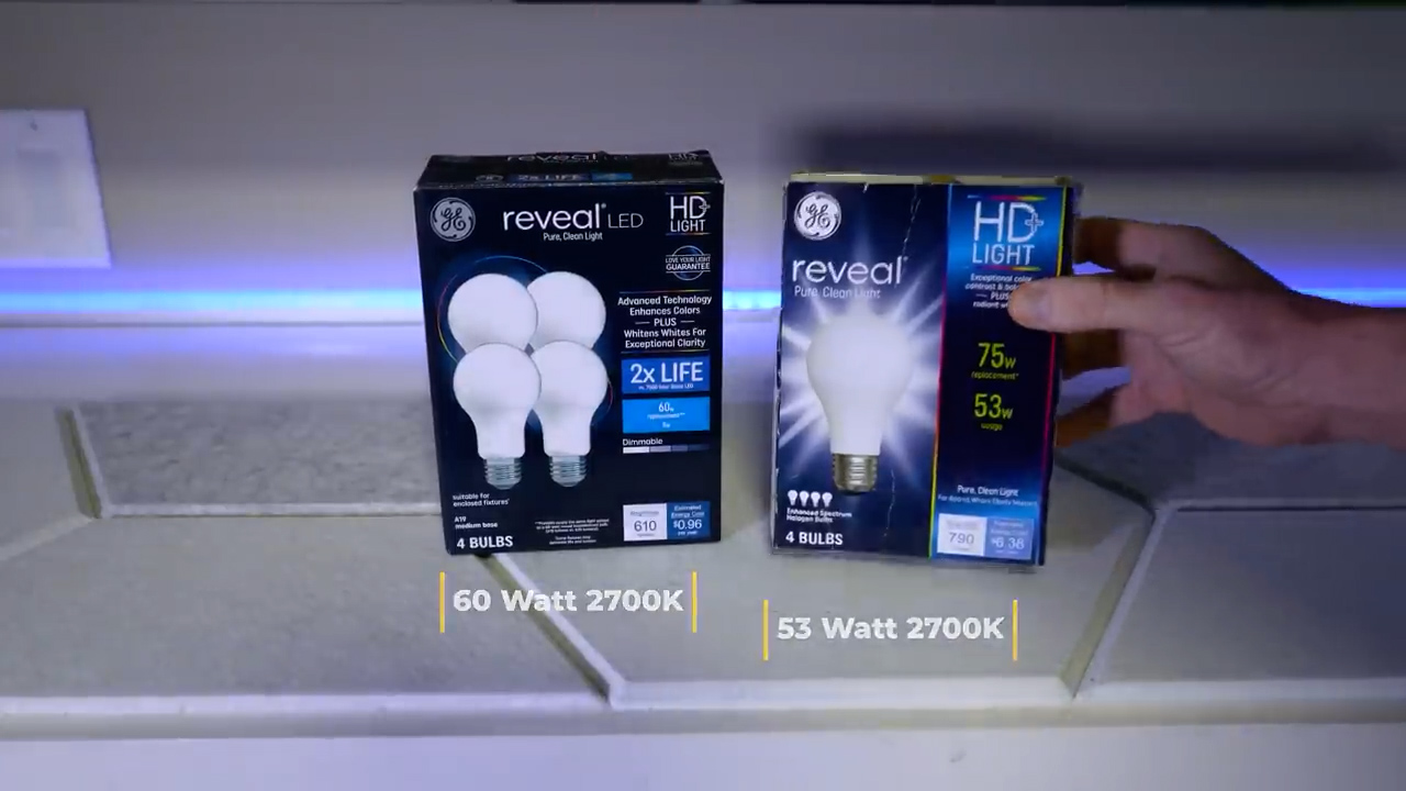 Also by popular demand, back on Amazon I bought the GE Reveal LED bulbs in 2700K, and these illegal GE Reveal incandescent halogen bulbs that definitely shouldn’t be for sale based on the United States DOE’s energy efficiency policy for general purpose lightbulbs. And due to a significant number of requests I also bought a package of 60W soft white bulbs from CREE.