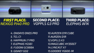 Here are the overall rankings for the rest of the projectors with the VOPPLS taking a surprising 2nd place, and last year’s winner, the Elephas W1K in 3rd place.