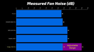 But even then, that makes the PJ40 Pro the loudest of all the projectors, with the Elephas W1K coming in with a lower pitched 43 decibels. The VOPPLS is also 43 decibels, but at a much higher pitch. The ONOYO ONO5 Pro has a very unoffensive fan that comes in around 39 db. And the TCL C1 has the least offensive fan noise at around 38 db.