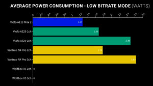 And last, the Viofo and Vantrue cameras have low bitrate mode which records a lower quality format that reduces file size, so it doesn’t take up too much space on the SD card and here are the power draw measurements for that mode.
