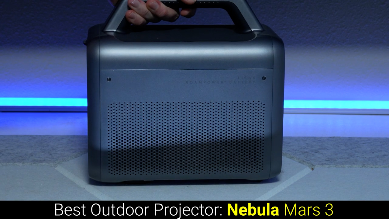 And my last recommendation is the Nebula Mars 3 which has a completely different use case than every other projector in this video. As I said before, the Mars 3 is the ultimate outdoor camping or backyard projector. Its 185 watt hour battery can project 1000 ANSI lumens with screaming loud audio for 2 hours, 400 ANSI lumens for over 5 hours, or it can be your Bluetooth speaker for an entire weekend without even challenging its battery life, so you can feel free to use the USB-A and USB-C charging outlets, and the convenient LED light whenever you want. On top of that it’s water, dust, and drop resistant, but keep in mind that it is pretty giant and weighs over 10 pounds.