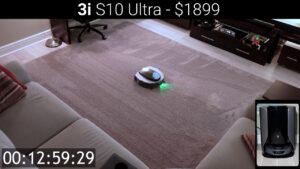 Last, the most expensive vacuum in this video with an MSRP of $1899 but a common sale price around $1499 is the 3i S10 Ultra, which has some pretty incredible features we’ll talk about later. But as for high pile carpet vacuuming performance, the S10 was slightly below average cleaning for 51 minutes and picking up just 20.2 grams or 50.5% of the debris mixture. After the auto empty process, the 3i had by far the most leftover debris in its bin at 4.9 grams.