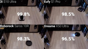 So that means that for combined vacuuming performance the overall winner was the Roborock Saros 10R, with the Dreame X50 Ultra in 2nd, and the ECOVACS X8 Pro OMNI in 3rd, and all three were slightly better than the top performer from last year’s video the Dreame L10S Ultra.