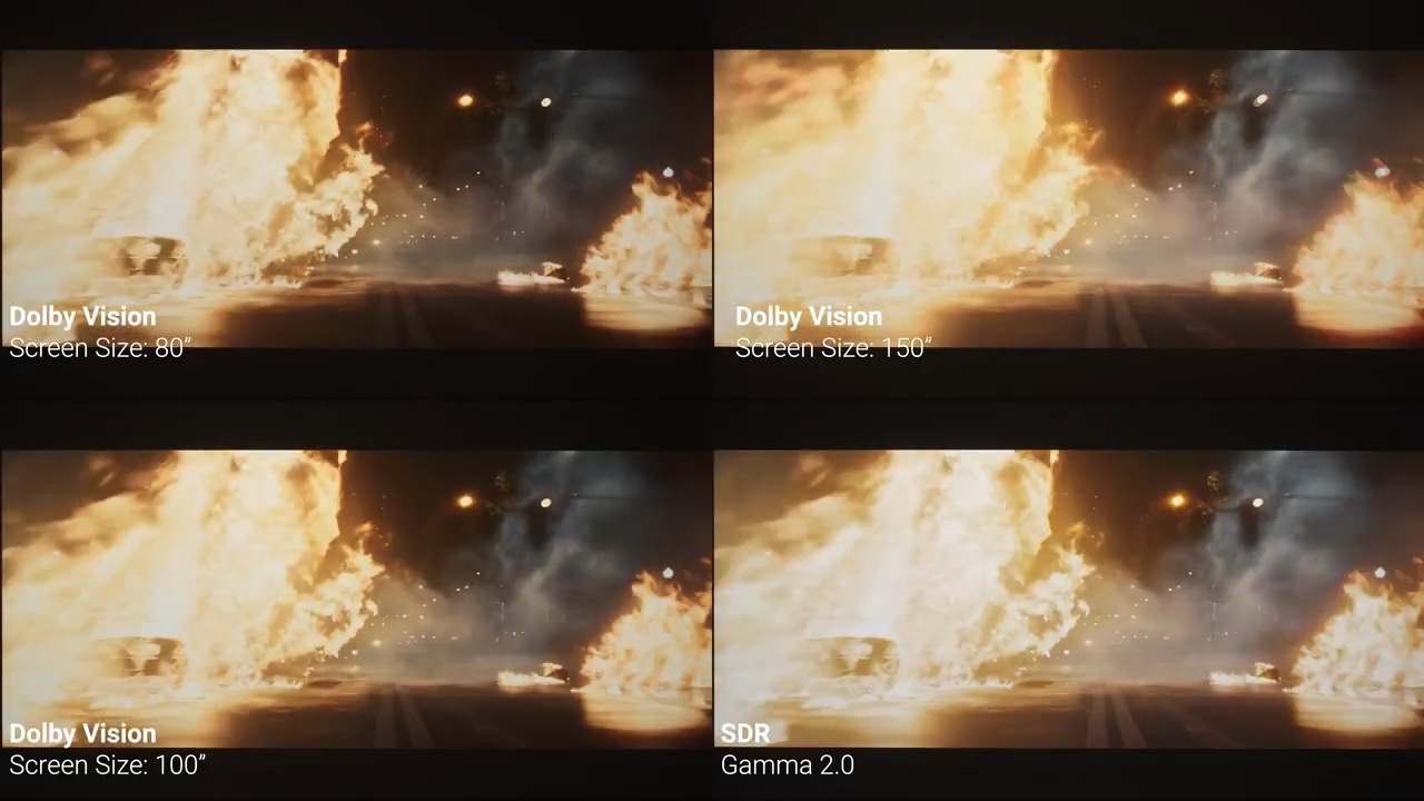 Last, Dolby Vision has all of the same options, plus one sneaky one. Even though the Gamma option is locked at 2.2, if you go to All Settings > Display and Sound > Screen > Screen Size, you’ll find that adjusting the screen size between 80” and 150” is almost exactly like adjusting the Gamma in SDR content, and a screen size of 150” is very similar to a 2.0 gamma with brighter shadows, 100” is like 2.2 gamma, and 80” is more like 2.4 gamma with the darkest shadows which is most suitable for a completely light controlled room.
