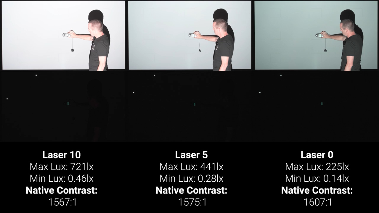 I did check and running a lower laser power doesn’t seem to affect the native or dynamic contrast of the Valerion, so feel free to change this setting without fear of messing up picture quality. But new in the most recent firmware, setting a laser power lower than 5 will automatically disable Enhanced Black Level, so I’d recommend using at least 5.